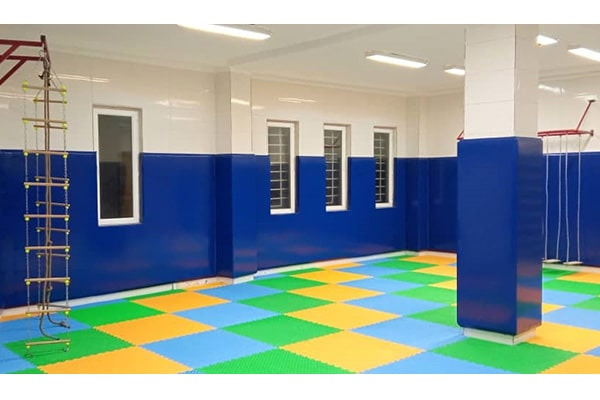 3) جهت حفاظت از سر ورزشکاران ، ارتفاع ضربه گیرها 2 متر است و با توجه به ابعاد سالن ورزشی قابل تغییر می باشد .